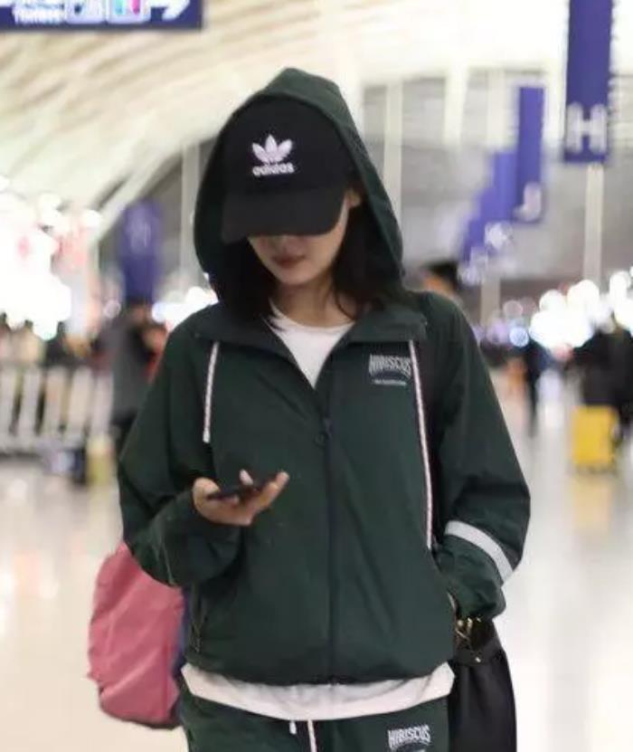 而最近现身机场的她,貌似是素颜(咳咳~也可能只擦了粉底),一身运动范儿,头戴棒球帽,走青春活力范儿!