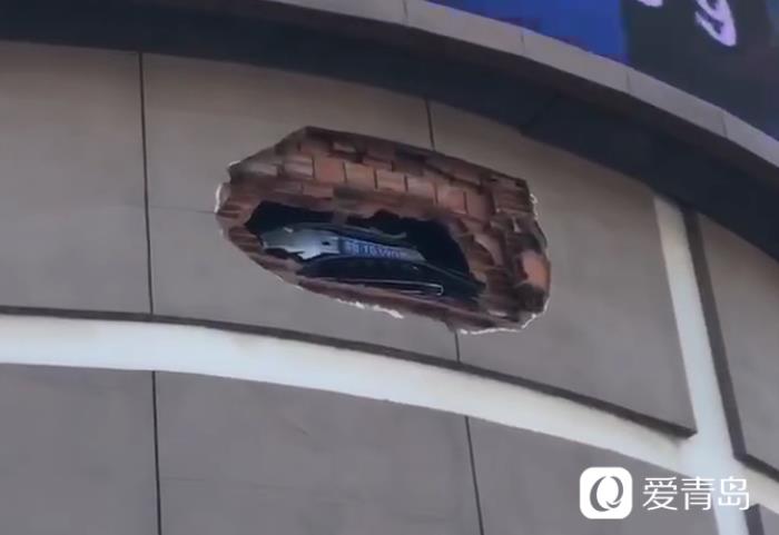 今天中午,城阳家佳源3楼停车场一私家车把外墙撞出一个大窟窿,现场有人员受伤,也有其他私家车受损。