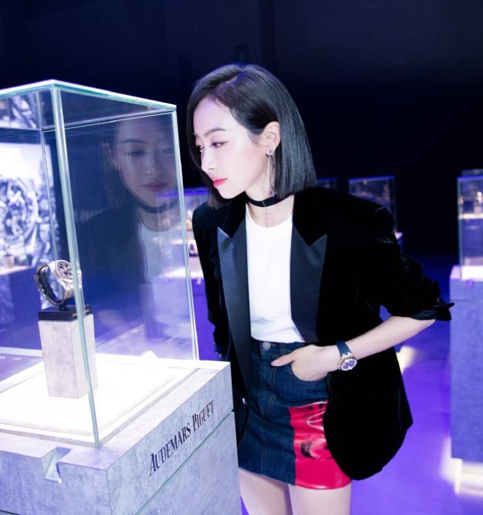 绒面的材质给正式的西装增添了不一样的风味,同时绒面的设计更是宋茜这样长相甜美的女性穿搭。