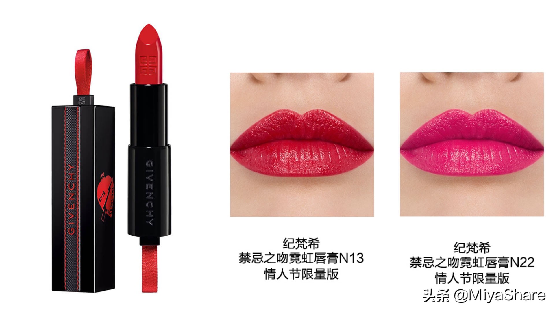 纪梵希的禁忌之吻每年情人节都会推出一款限定色。今年也是同样推出了2款限定色,个人看来估计大多数亚洲女生都会选择N13这个色号吧。N22除非是特别白的白皮一般人真的很难驾驭。
