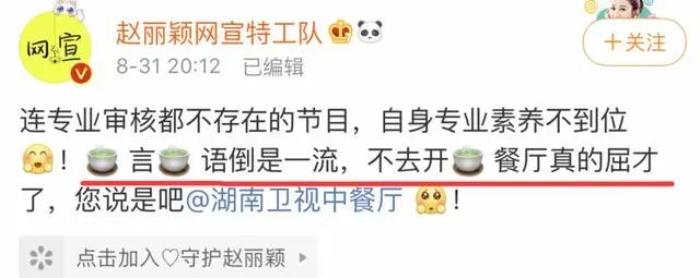 对于节目组的避重就轻,赵丽颖的网宣特工队提出了强烈的不满,声称就连专业审核都不存在的节目,行为真是太绿茶了,道歉内容简直是在敷衍,不去开绿茶餐厅真是太屈才了。