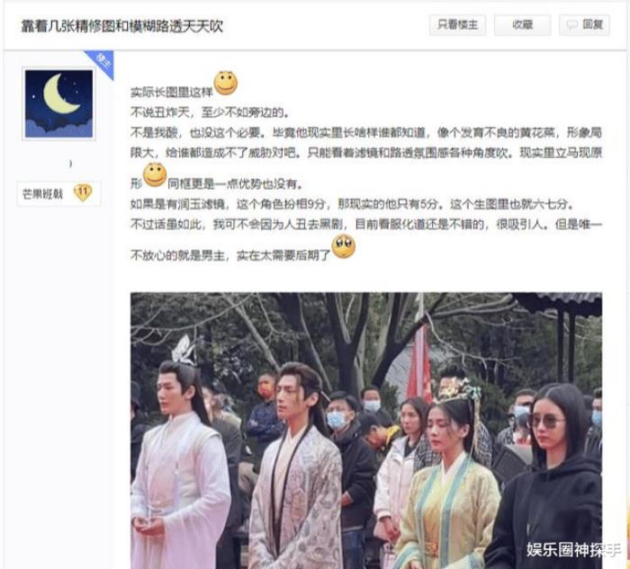 有网友发帖《靠着几张精修图和模糊路透天天吹》并晒出4位主角同款的生图,指责罗云熙生图状态远不及精修。
