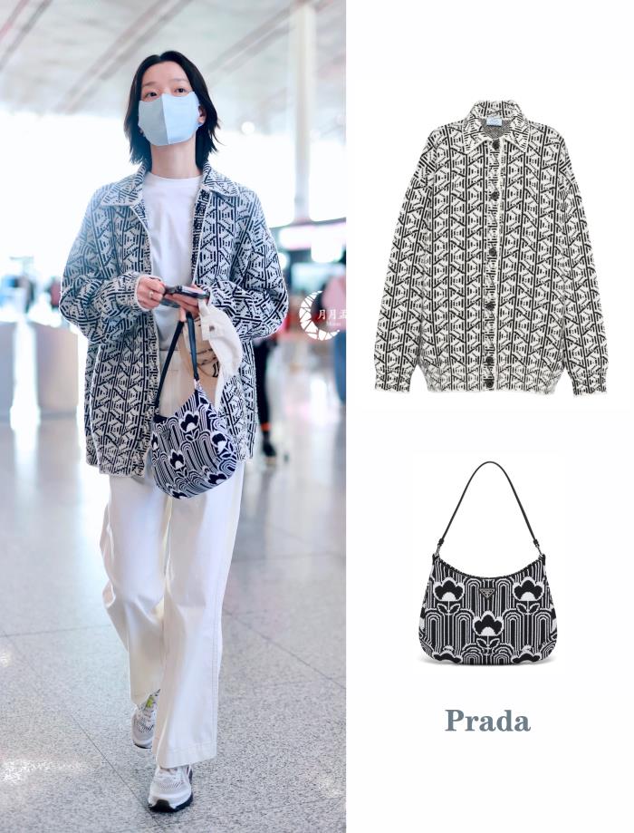 Prada几何图案提花针织开衫,宽松的Oversize版型舒适又保暖,中性风的精致与高级感,在秋冬季搭配黑白灰穿搭效果极佳~