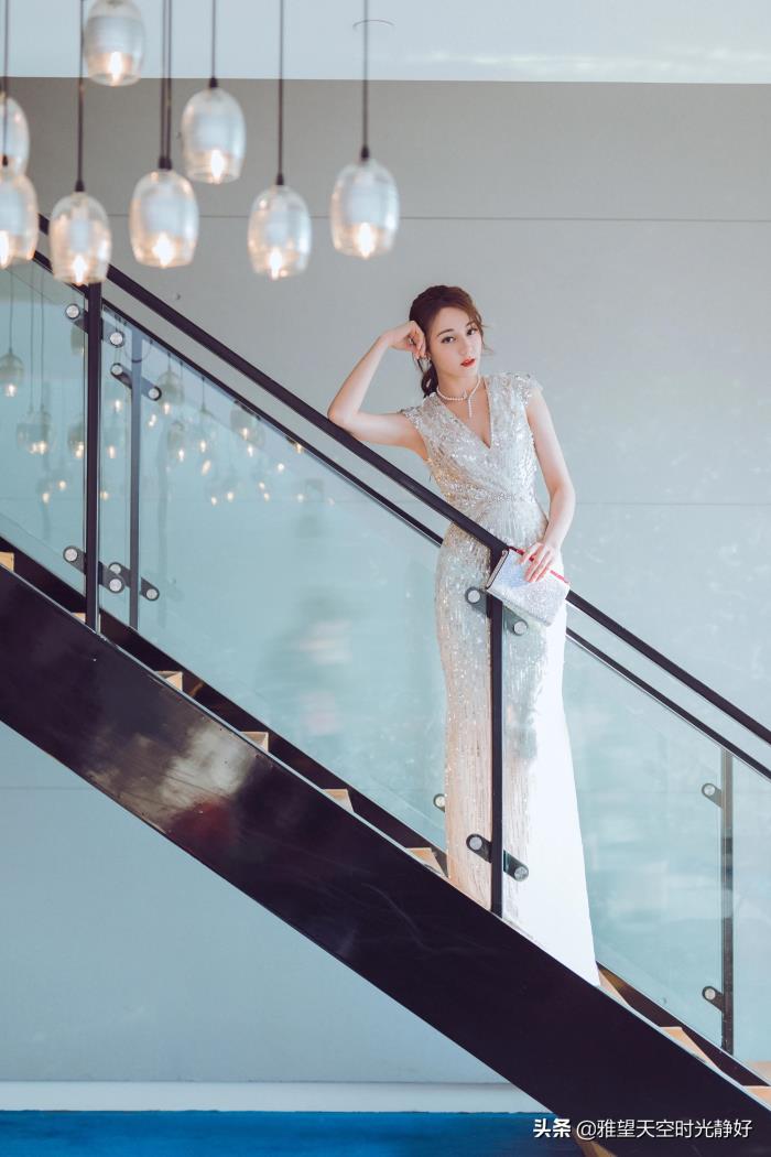 钉珠闪片礼服裙,高贵冷艳御姐风。
