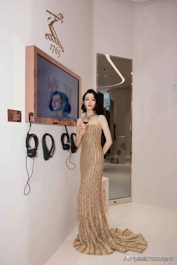 吊带金色鱼尾礼服,搭配微卷短发,俏丽精致、明艳动人,优雅又性感。
