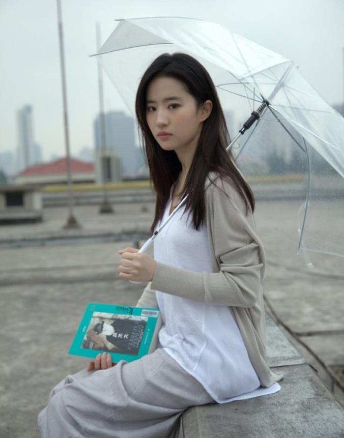 我们也不要嫌弃那些素雅色调的针织外套,别看颜色上它们是那么不起眼,但是搭配得当也会给人一种高级雅致的感觉。特别是这种灰色调的针织外套,光看这件开衫会觉得好老气,颜色一点都不讨喜,而刘亦菲内搭轻盈的白色打底衫,再配上灰色的半身长裙,整身的色彩不华丽却素雅得很美,配上一头清爽的黑色长发,变成了安静的美女子。