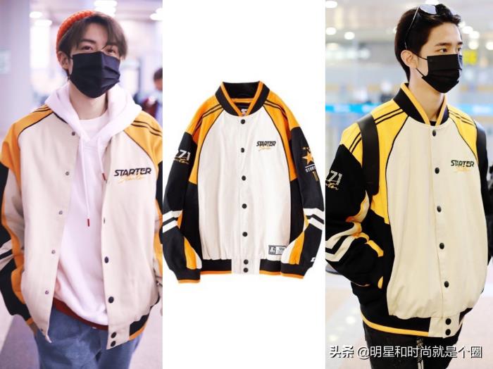 管栎现身机场,身穿STARTER拼色夹克,和赵让撞衫。