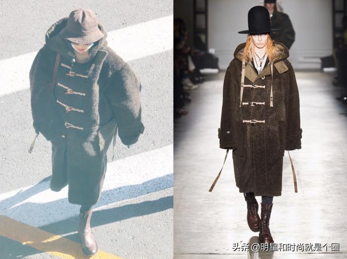 倪妮现身北京机场,身穿R13 2020秋冬系列棕色羊羔绒长款连帽大衣,戴了渔夫帽、皮靴,非常适合冬季出行的保暖搭配。