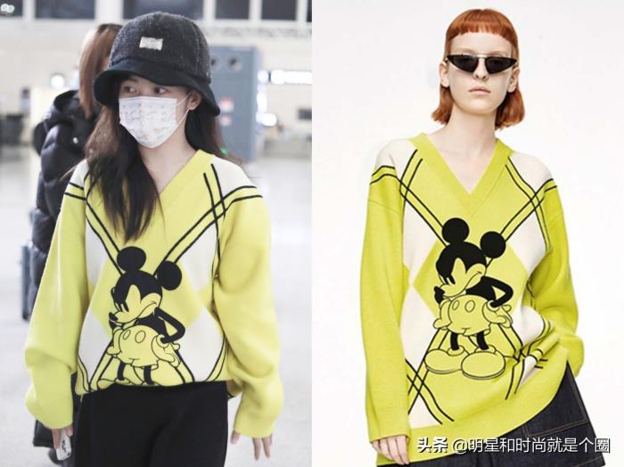 赖美云现身机场,身穿MO&Co.长款针织衫,黄绿色的衣服简直是太吸引眼球了。