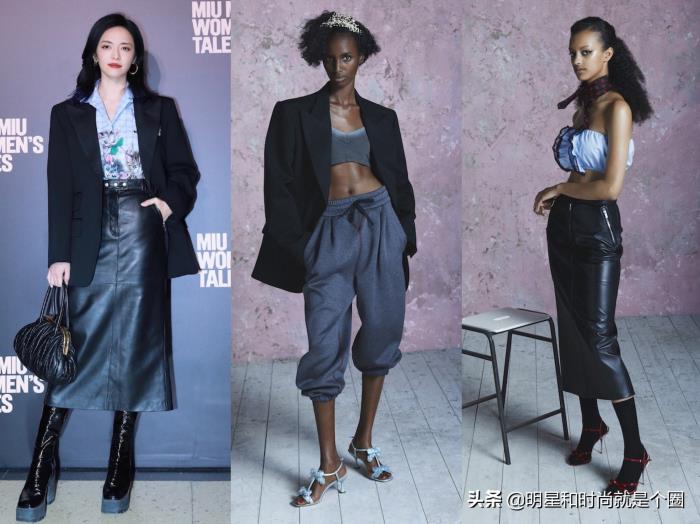 Miu Miu“女人的故事”短片展映会,姚晨身穿Miu Miu 2021早春系列黑色西装、半身皮裙,穿的鞋子真的是贼丑~