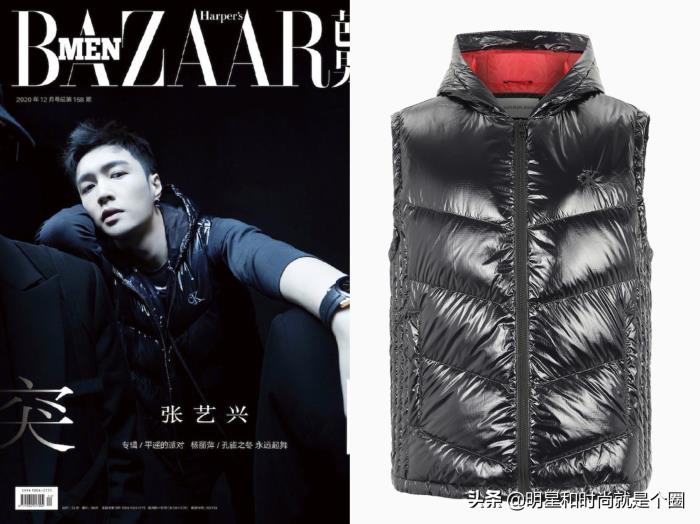 《芭莎男士》2020年12月刊封面,张艺兴身穿Calvin Klein Jeans黑色亮面羽绒马甲,真的是帅气无比!