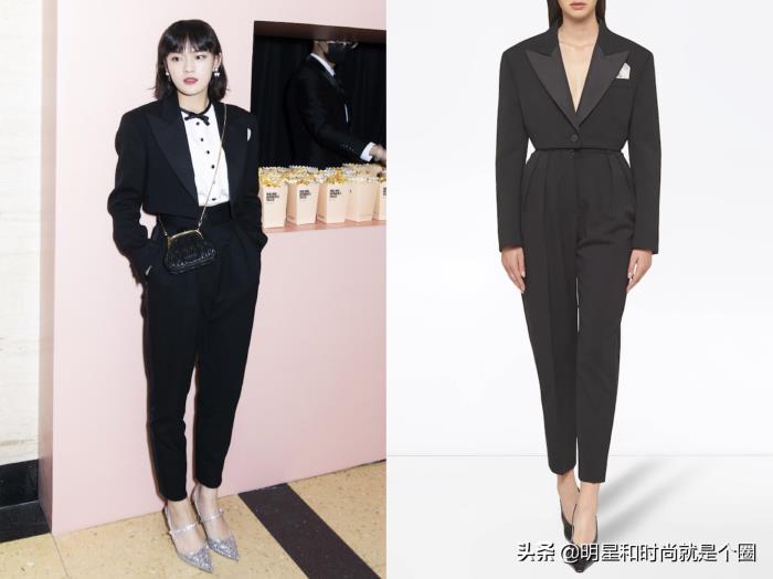 Miu Miu“女人的故事”短片展映会,文淇身穿Miu Miu黑色短款小西装,黑白配的菇凉,但是感觉鞋子有点不搭。