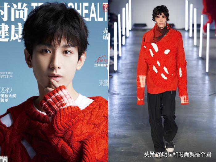 《时尚健康》2020年12月刊封面,成毅身穿Feng Chen Wang 2020秋冬系列红色破洞毛衣,帅得飞起!