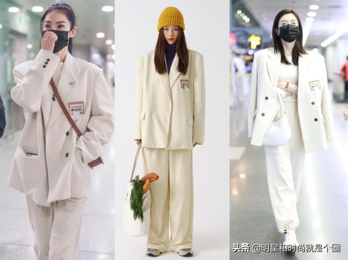 曾可妮现身上海机场,身穿DO NOT TAG白色灯芯绒西服套装,和江疏影撞衫。从照片上看这姑娘有点高哦。