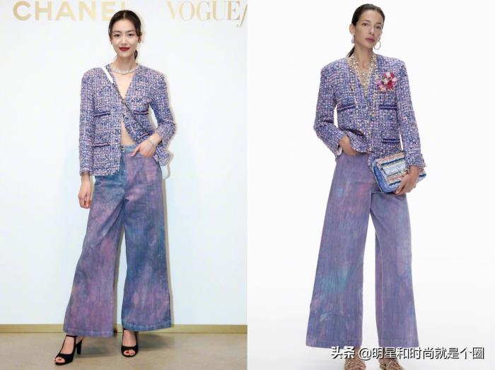 VogueFilm时装电影盛典,刘雯身穿Chanel 2021春夏预告系列紫色软呢外套、阔腿牛仔裤,大表姐的造型从来不出错,美!