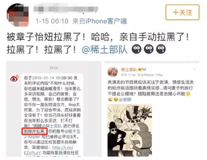 但章子怡在力挺谢娜那条微博底下拉黑了自己的一个粉丝,蛮惹眼: