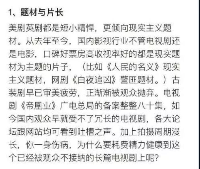 只不过,说好听也没用。之前章子怡粉丝听说章子怡要拍《帝王业》,洋洋洒洒地写下了一篇论文式文章,列出章子怡接《帝王业》的不可取之处。