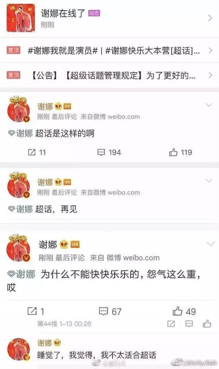 之后,谢娜在超话连发几条微博,说超话怨气太重,不想再来超话了。