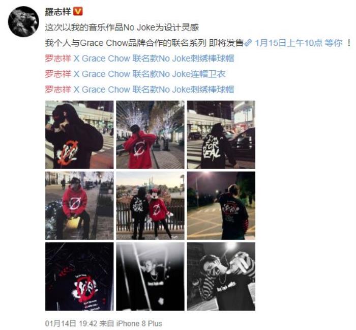 最后再说下罗志祥关评论一事,起因是他在微博公开说他因为新专辑和女友淘宝店合作出了一款衣服。