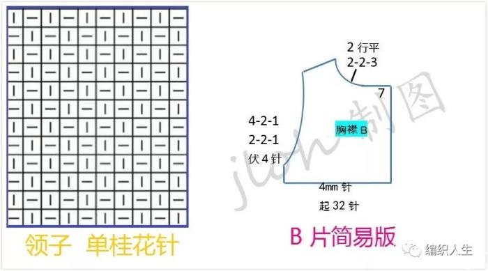 六、除了画制衣构图,段染对色花精神,第二费时的要算织胸襟B 片了,