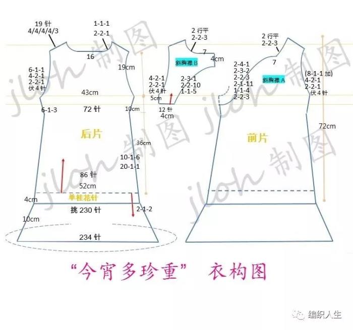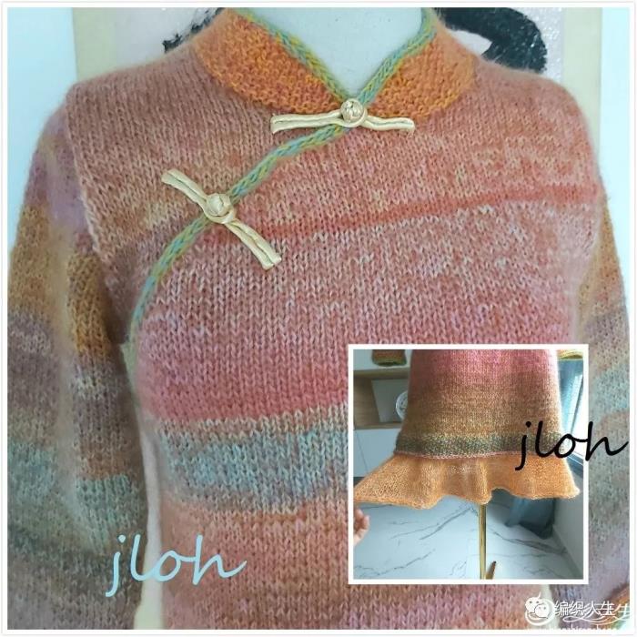 四、再织的话,前胸片织高多2cm才挖前领,旗袍神髓会较贴切点