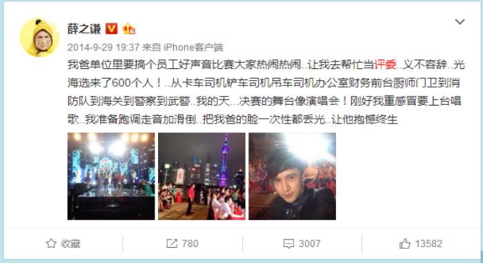 从注册微博开始,薛之谦都保持着自黑的幽默路线,自黑自己不红是常有的事,不仅如此,自黑到连自己老爸都不放过。