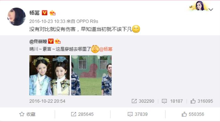 关注大幂幂的微博的人会惊喜地发现,她的自黑在分寸拿捏上越来越精准到位,可爱中带着调皮。且不提大幂幂昔日创作的多个自黑热点,看近日,随着《三生三世十里桃花》的热播,大幂幂的自黑是走连续剧酱式的,不仅如此,还紧跟网友的吐槽。被网友调侃发际线高,就直接发文:“我是一个禁不起批评的人,如果你们批评我,我就去植发。”