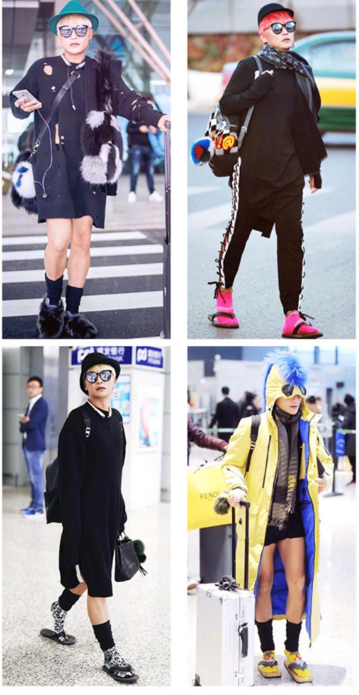 以前一直听说他放飞自我是团队为了炒红他而刻意为之,但近来却听说这是他自己的想法,团队现在也劝不住他了,而他除了机场穿着辣眼睛,走红毯太抢镜,爱染头发和拍的MV略带色情外,其他场合穿着还是很正式的。