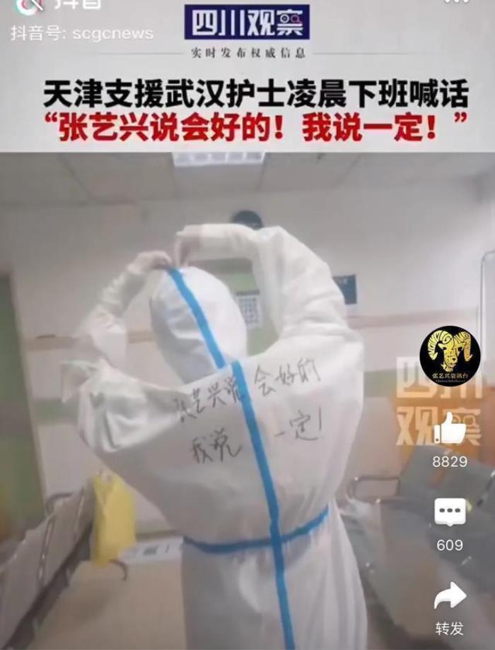 22日,一位天津支援武汉的护士凌晨下班喊话:“张艺兴说会好的!我说一定!”随后这位护士发了一条微博讲述她的故事,艺兴看到了这条微博,也温柔评论:“这次换我为你应援。”