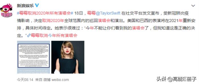 线上演出的同时,霉霉还在社交平台宣布取消了2020年全年的演唱会,有点遗憾,不过霉霉说“我知道这是正确的决定”。