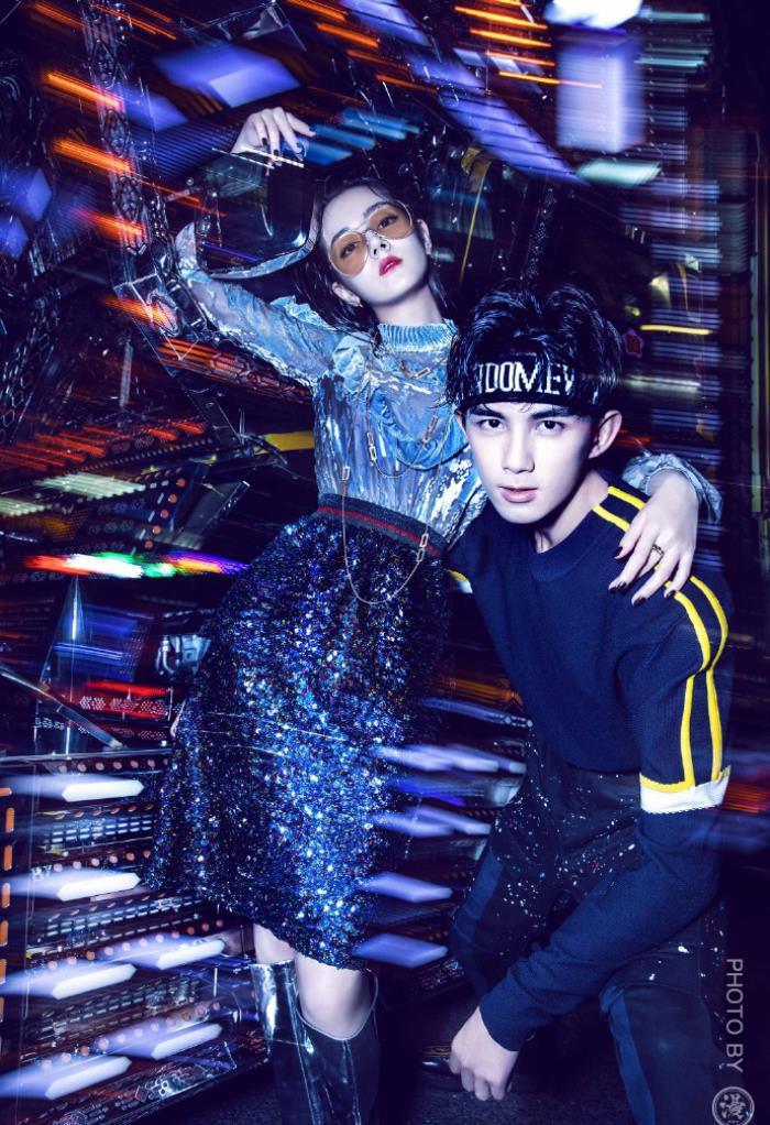 迪丽热巴和吴磊这对姐弟组合完全就是走狂拽酷炫前卫风,真的只有颜值高的人才能hold住这造型。