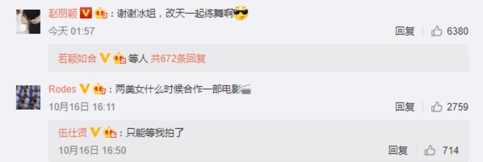 李冰冰发的为赵丽颖庆生的合影照片中,两人身着同款衣裤,坐在椅子上,头靠头亲密无间,显得青春靓丽,颜值都很高。粉丝们纷纷留言祝福。还有粉丝问“两美女什么时候合作一部电影”。曾与李冰冰合作电影《独自等待》的导演伍仕贤凑热闹回复道“只能等我拍了”,引来众多粉丝跟帖。
