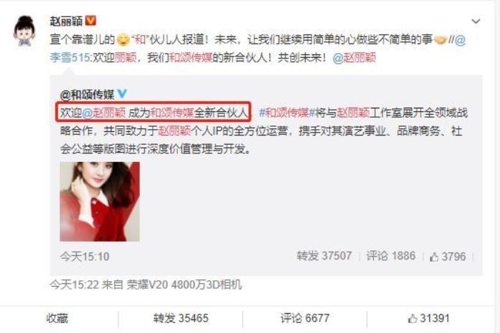 赵丽颖和李冰冰一个是“古装剧女王”,一个是电影大咖,此前并未在影视剧上有过合作,两人又相差14岁,可以说两代影视明星,为何李冰冰在个人社交网络平台上发文图为赵丽颖庆生呢?原来,去年3月,赵丽颖在和前经纪人黄冰结束合作之后,转而与和颂传媒合作。2019年3月5日,和颂传媒官微宣布“欢迎赵丽颖成为和颂传媒全新合伙人”,赵丽颖转发了这条微博,称“‘和’伙人报到,未来,让我们继续用简单的心做些不简单的事”。