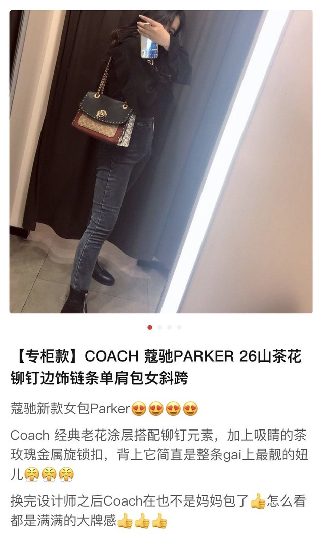 这款COACH蔻驰PARKER女士单肩包是COACH的经典之作,大牌设计师参与设计,为拼色经典款,外观大气稳重,时尚休闲,其整体尺寸约为25*9*16cm。