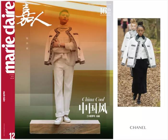 作为CHANEL腕表形象大使陈伟霆,有着“CHANEL王子”之称,这次的杂志封面穿的衣服,戴的配饰都是CHANEL的,而且还是女款!他穿的这件软呢外套,内搭白色的衬衫,白色的裤子,以牡丹花为背景,充满了贵气、精致和优雅感!很多网友看到陈伟霆这套穿搭,都说穿的比模特还要好看!