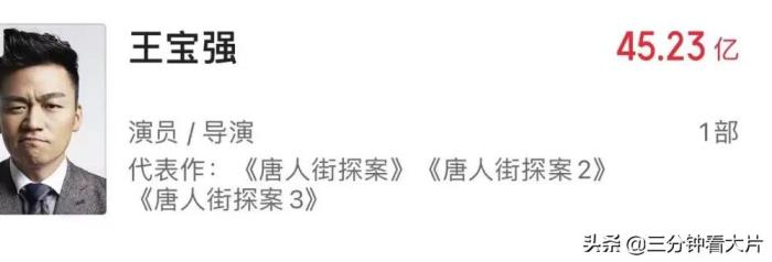 王宝强则凭借《唐人街探案三》45.23亿的总票房位列第六;