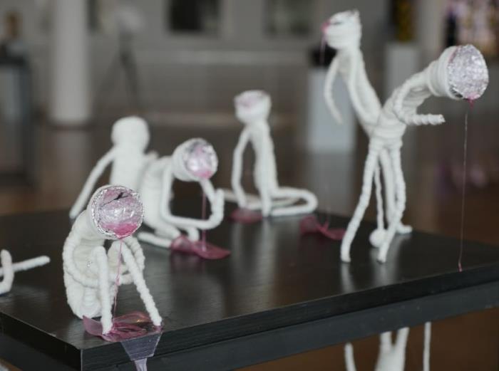 出生于青岛胶州的高文谦,目前就读于巴黎美术学院。他的三件参展作品便是另一概念领域的雕塑,“这个作品属于‘电子雕塑’。”高文谦说,“电视机属于作品的一部分,而不是作为画框或者仅仅是视频的承载体。”高文谦的这件作品在整个展览中很是突兀,电视机作为一种雕塑元素出现。