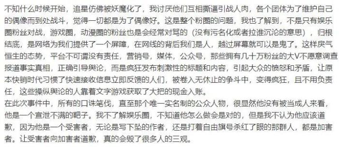 我是一个中学老师,我转发了你的文章之后,很多学生和家长都有非常深刻的反思,特别是学生,他们通过正确引导,对这件事情的看法更加客观,私下了解到他们很多参与骂战的,也收了手。希望有多一些理性而客观的公众号,营销号的引导真的很害人!