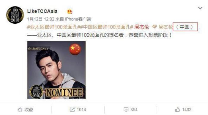对此,海外网进行了相关求证。浏览“TC Candler”亚太区的微博及海外社交平台Instagram账号,周杰伦、昆凌、范玮琪、阿信、林志颖、辰亦儒、郑元畅等台湾地区艺人均被标注“来自中国”。