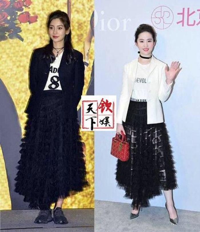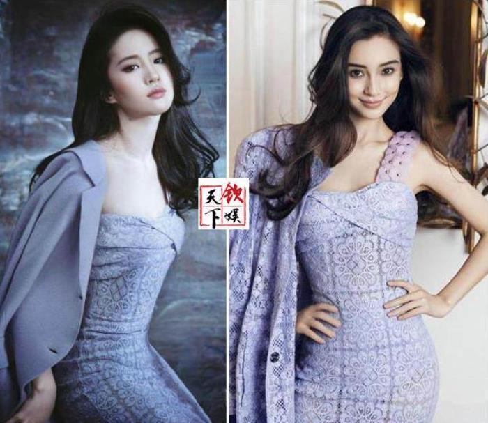此款撞衫,不得不说Angelababy确实稍微好看一点。刘亦菲的宽肩膀和腰线有点圆润,不过胜在气质上!