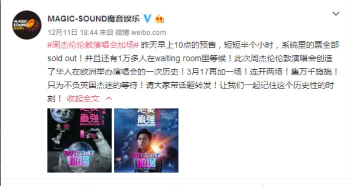 如果你觉得国内的演唱会不具有说服力,那么我们放眼看看国外的演唱会,去年12月2日官方才宣布3月18日将在英国伦敦演唱会圣地温布利体育馆举办地表最强演唱会,12月10日售票,短短8天的时间,几乎没有做宣传的状态下即以24分钟完售第一场门票!
