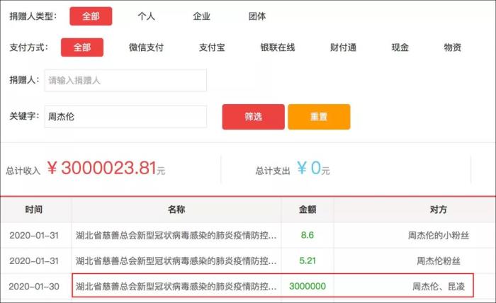 根据台湾东森新闻网今日报道,昨天(30日),台湾歌手周杰伦与妻子昆凌通过湖北省慈善总会共同捐出300万元人民币;