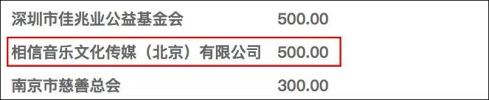 五月天所属的相信音乐文化传媒有限公司捐出500万元人民币;
