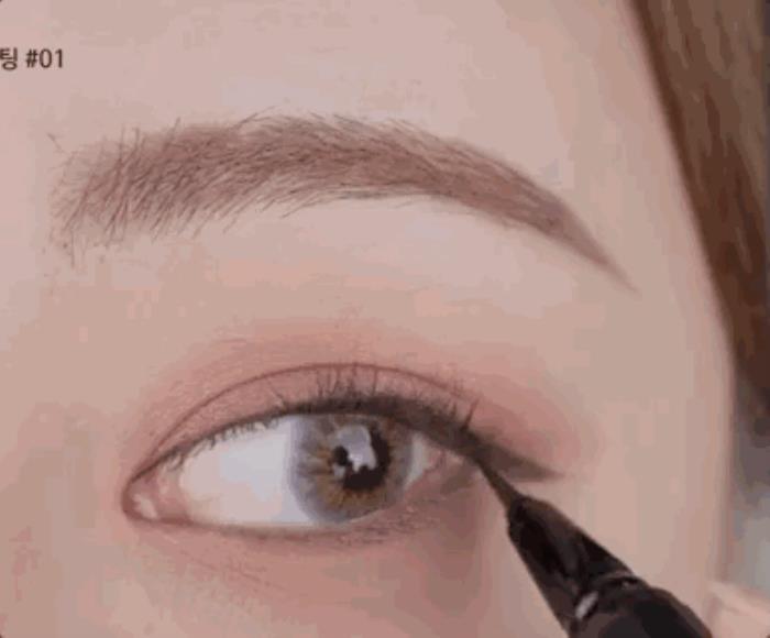如果想画鲶鱼脸妆容,那就要摒弃传统的欧式大眼睛,用细眼线笔拉长眼尾,在视觉上打造眼睛细长的效果。