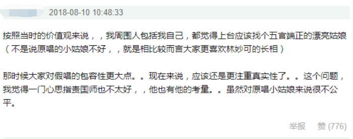 不过也有网友认为在当时的情况下,张艺谋身为开幕式的总导演有自己的打算和衡量,这么做虽然对真声小姑娘不公平,但张艺谋也可以被原谅。