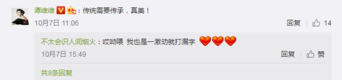 就连谭维维也转发微博表示:传统需要传承,真美!之前跟陕西华阴老腔的成功合作让谭维维声名大噪,对传统音乐和文化的关注,也许已经在谭维维心里买下了种子。
