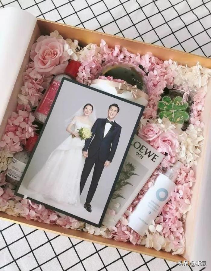 伴手礼也是用足了心思,打开就是大写超甜婚纱照,这对夫妇表情不能再虐狗了!
