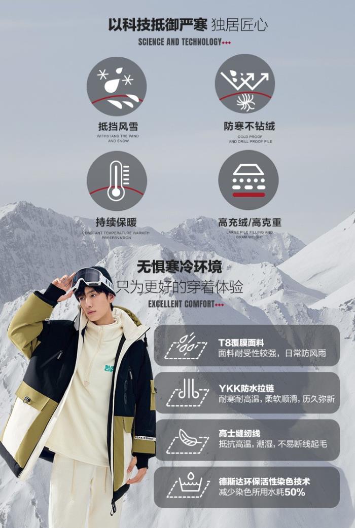 和市场上80%鸭绒充绒的羽绒服截然不同,这件羽绒服选用的是我们长白山下、松花江畔的世界公认“环境鹅绒带”生产的白鹅绒。科学养殖和纯天然氧吧让产绒的鹅们过着“人不如鹅”的生活,所以产出的大鹅绒是近乎顶级的蓬松。这也让这件羽绒服可以“一衣两穿”达到了满足滑雪级防风、防水和保暖的水平,重要的是还能很透气,穿着感会颠覆以往的羽绒服体验。想要尝试滑雪又不想花大钱置办滑雪装备的姐妹们也可以入这件的。