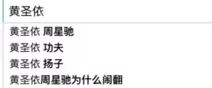 在百度搜索打上“黄圣依”后,词条备选项会自动弹出那些爆炸性的新闻: