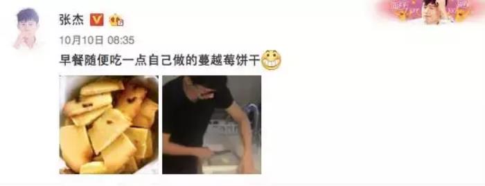 比如,之前张杰亲自下厨做的蔓越莓饼干,还嘱咐广大的男生朋友,这份“狗粮”对女生很好哦。